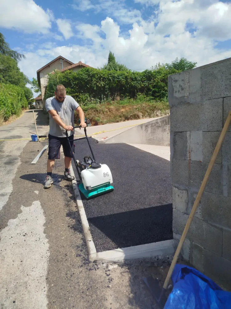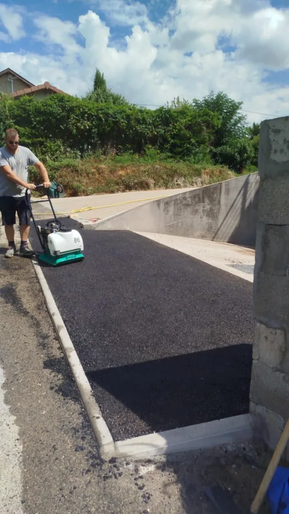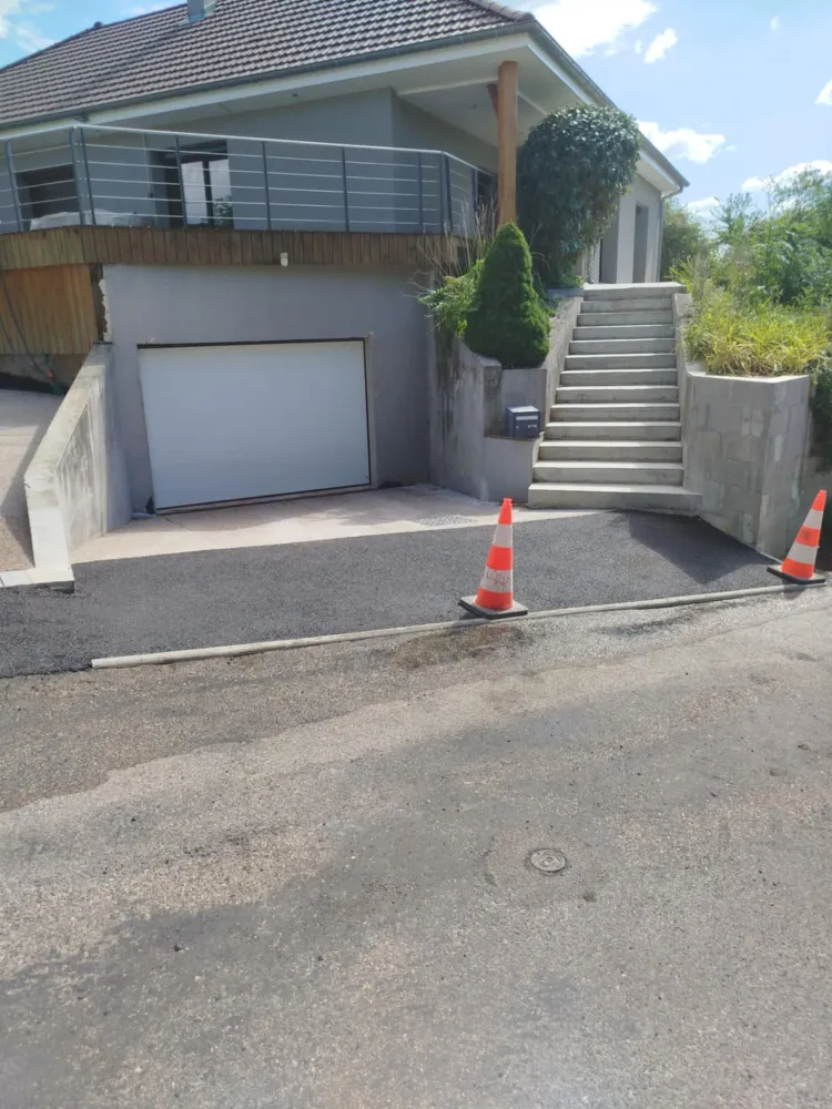 KS Maçonnerie a réalisé un aménagement d'entrée et d'accès au jardin de cette propriété en deux matériaux différent soit du béton désactivé et de l'enrobé.