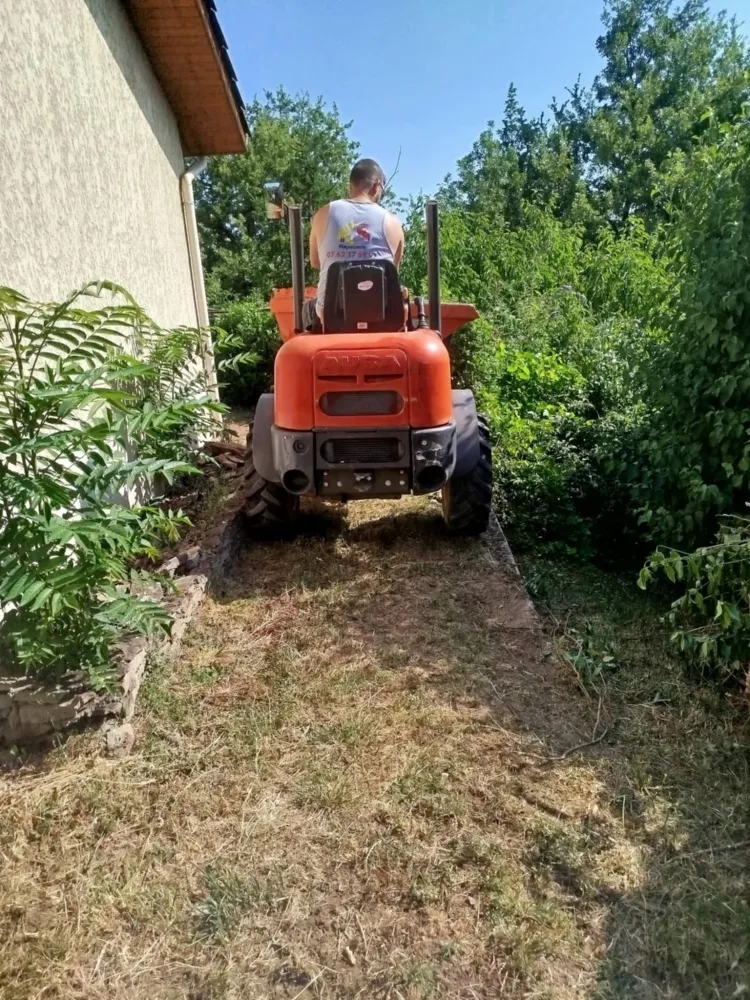 Avec beaucoup d'attention, de concentration et de professionnalisme, KS Maçonnerie à réalisé un terrassement dans un jardin très étroit surtout son accès pour pouvoir créer un projet de terrasse suspendu.
